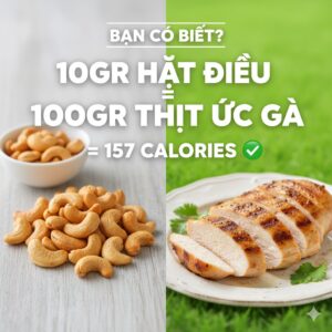 Ăn hạt điều bao nhiêu calo? 10g hạt điều bằng 100g ức gà?