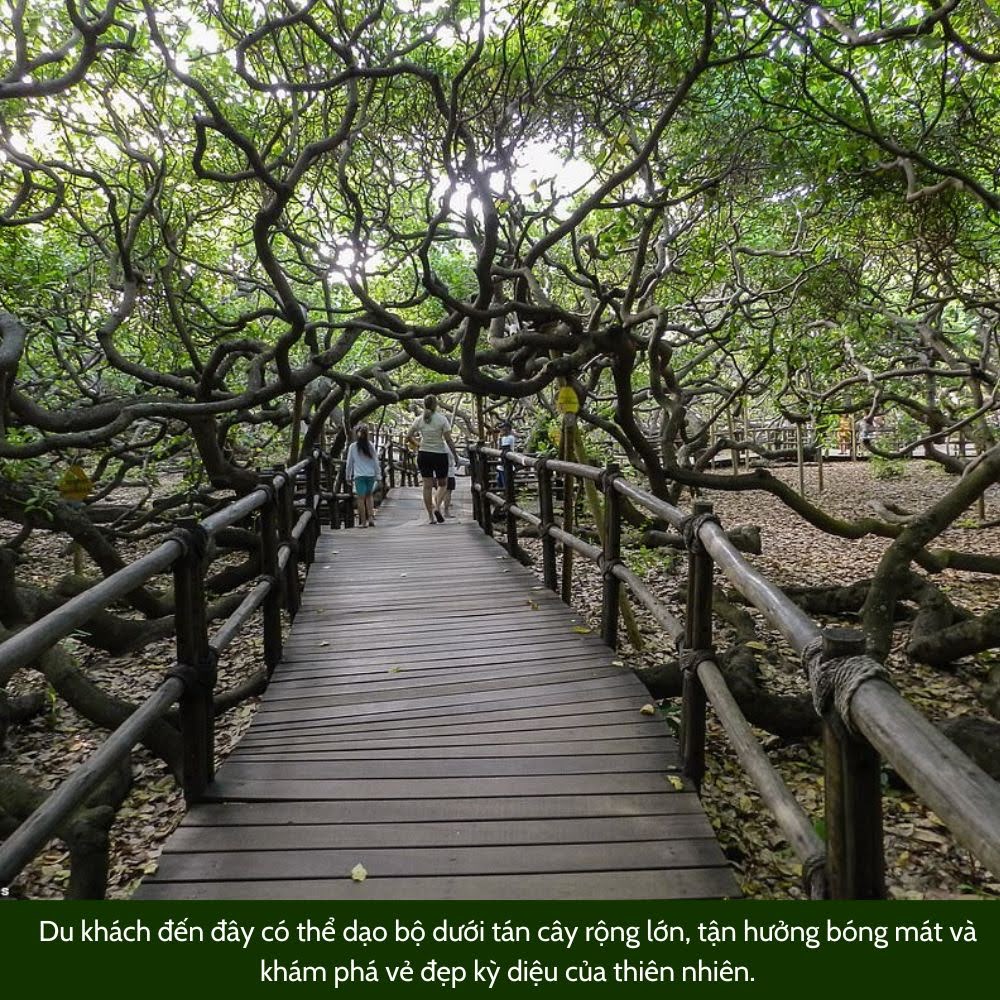 Trải qua thời gian dài, đến nay người ta gần như không thể phân biệt được đâu là gốc cây và các nhánh của nó. Đi giữa tán cây rộng lớn, du khách có cảm giác như lạc vào khu rừng nhỏ. Trên thực tế đây chỉ là một cây.