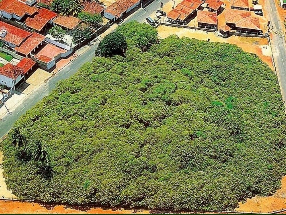 Đi dạo bên dưới tán cây rộng lớn, bạn có thể nghĩ rằng mình đang đi trong một khu rừng hạt điều xanh tươi, nhưng thực ra bạn chỉ đang đi bên trong một cây duy nhất. Cây này bao phủ khoảng hai mẫu Anh, gần bằng hai sân bóng đá, tương đương với khoảng 70 cây hạt điều có kích thước bình thường.