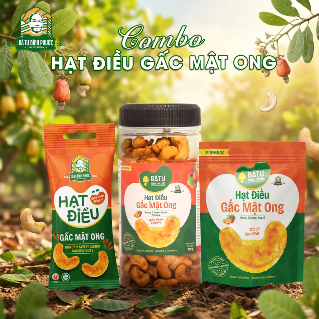 Sự hòa quyện độc đáo này không chỉ mang lại một hương vị mới lạ mà còn chứa đựng nhiều giá trị dinh dưỡng. Gấc được xem là loại quả giàu vitamin A, rất tốt cho sức khỏe, kết hợp cùng mật ong nguyên chất giúp tăng sức đề kháng, và hạt điều thì lại cung cấp thêm protein, chất xơ, và khoáng chất. Đây là món quà không chỉ để thưởng thức mà còn thay cho lời chúc sức khỏe và may mắn đến những người bạn trân trọng.Lựa chọn tiêu đen làm quà không chỉ thể hiện sự tinh tế mà còn mang đến một món quà đầy ý nghĩa và thiết thực. Bạn có thể mua tiêu nguyên hạt hoặc tiêu xay nhuyễn để tiện lợi khi sử dụng. Nếu có dịp ghé thăm Bình Phước, đừng quên mang theo vài gói tiêu đen về làm quà nhé!