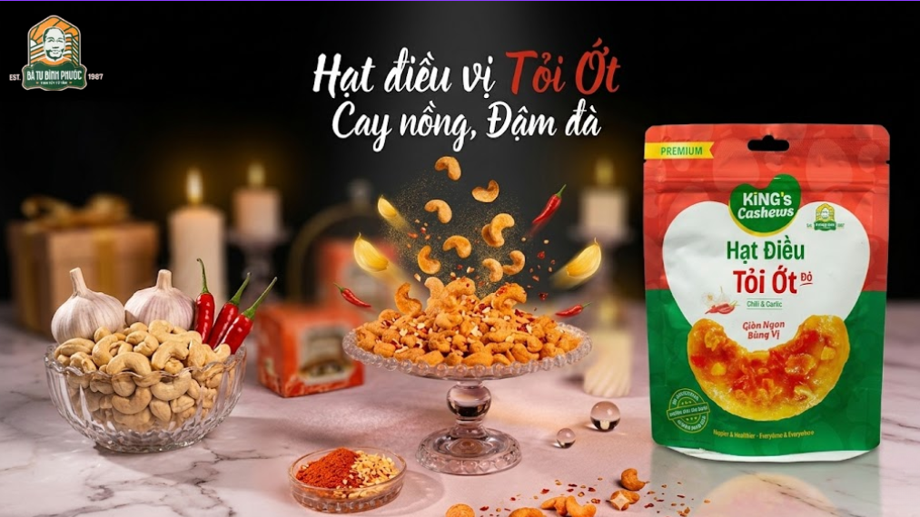 Bạn đang tìm món ăn vặt vừa ngon vừa đa dạng hương vị? Hạt điều rang tẩm Bà Tư Bình Phước là lựa chọn đáng thử. Ba vị nổi bật gồm phô mai, gấc mật ong và tỏi ớt đỏ đang rất được ưa chuộng.