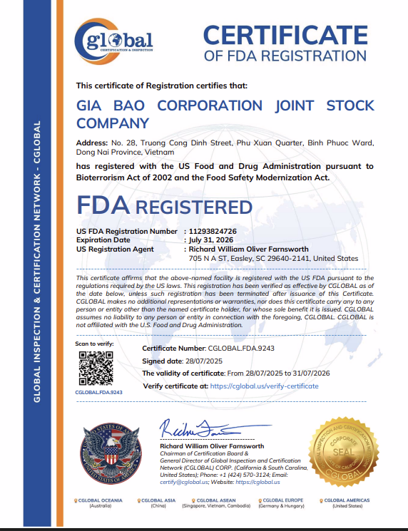 FDA là một trong những tiêu chuẩn nghiêm ngặt nhất thế giới. Việc đạt chứng nhận này giúp hạt điều Bà Tư: