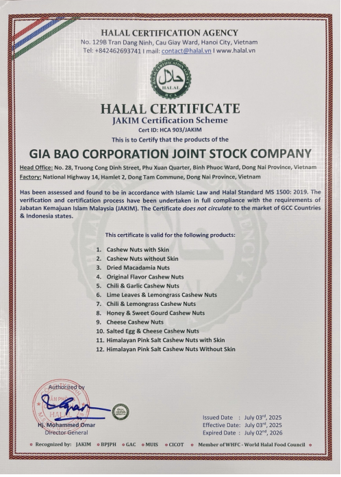 Halal là tiêu chuẩn quan trọng giúp sản phẩm tiếp cận các thị trường như Trung Đông, Malaysia, Indonesia. Hạt điều đạt Halal đảm bảo: