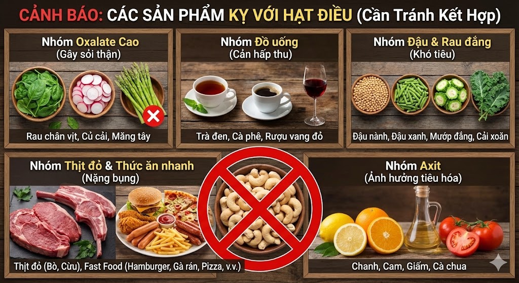 1. Hạt điều kỵ với thực phẩm giàu oxalate
