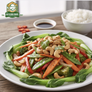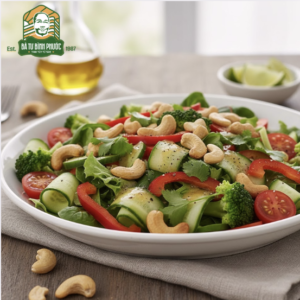 - Thêm hạt điều: Trộn hạt điều rang giòn vào tô rau.