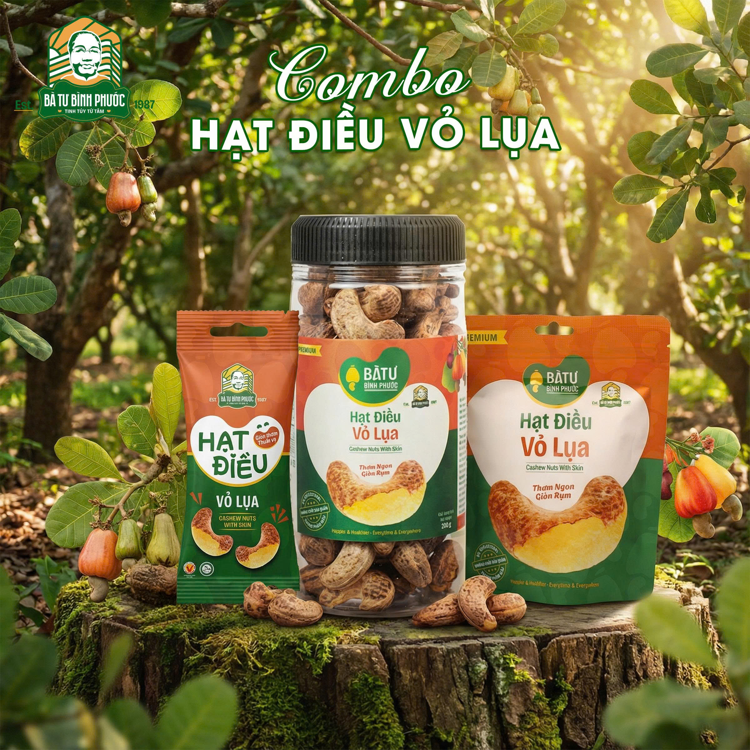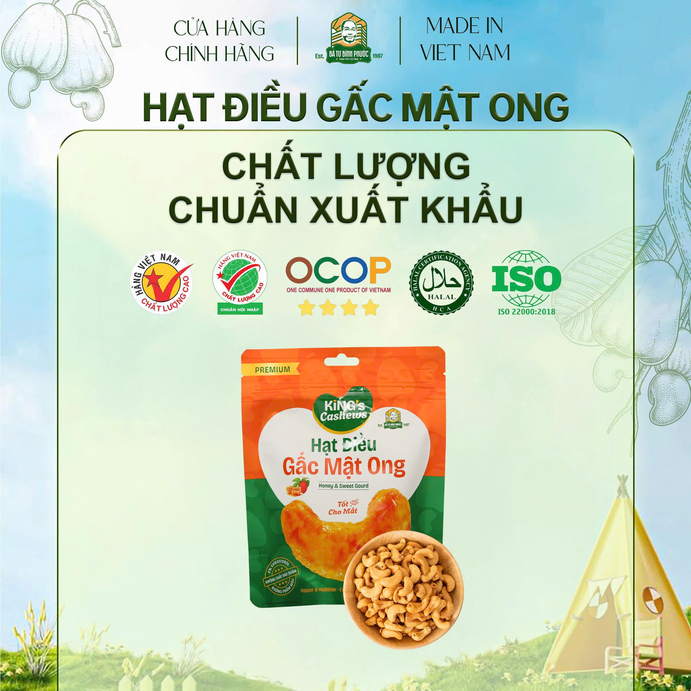 🌰 Hạt Điều gấc mật ong Bà Tư Bình Phước 200g – 65g – 30g