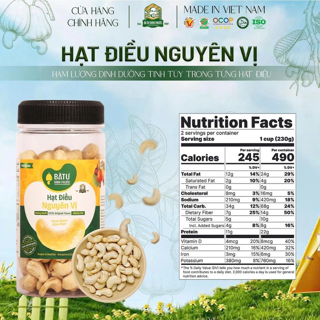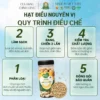 - KHÔNG muối – KHÔNG đường – KHÔNG dầu chiên – KHÔNG chất bảo quản → chỉ giữ lại vị ngọt béo nguyên bản của hạt điều đất đỏ bazan.