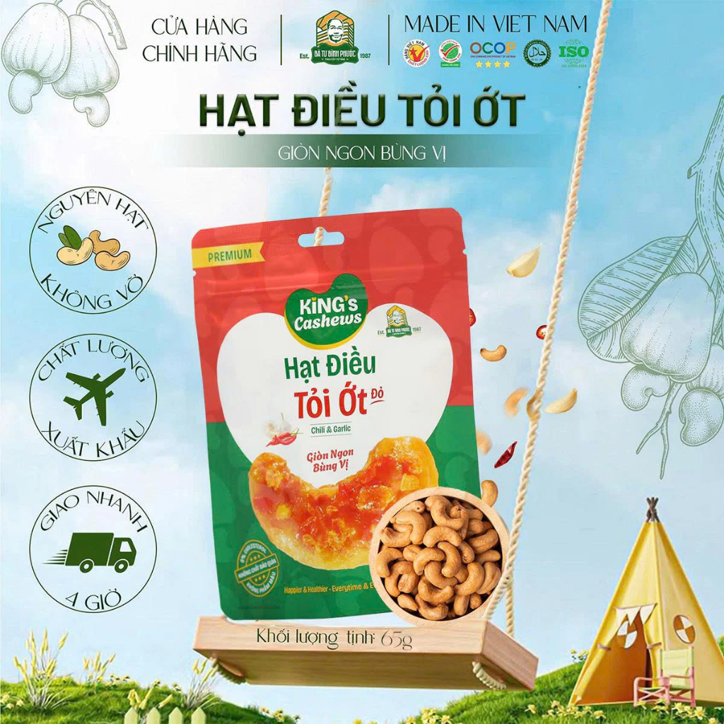 Hạt điều nhân loại 1 + phô mai tự nhiên / tỏi phi + ớt đỏ / gấc tươi + mật ong rừng / muối biển / đường mía Không dầu chiên – Không phẩm màu – Không hương liệu nhân tạo – Không chất bảo quản