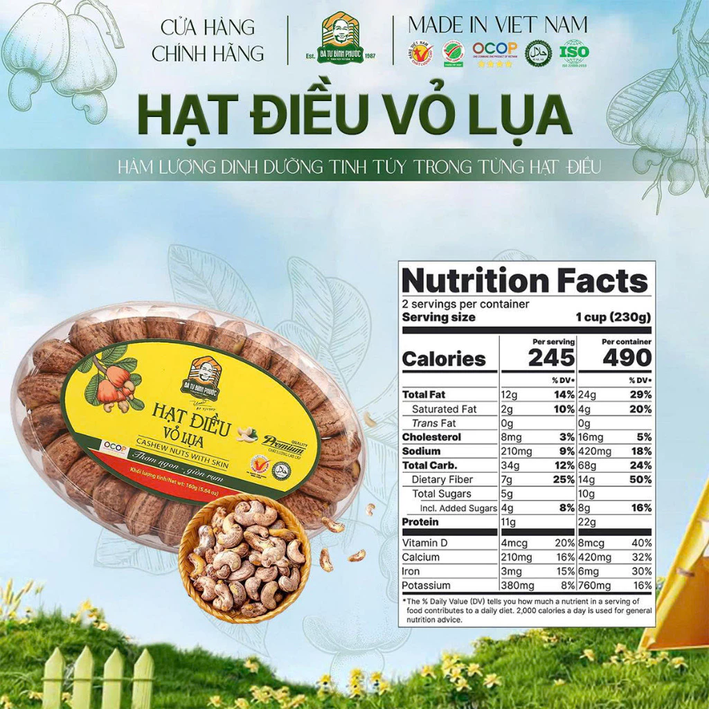 Hạt Điều Vỏ Lụa Bà Tư Bình Phước 160g – Giòn Bùi Mộc Mạc, Rang Củi Thủ Công Chính Gốc