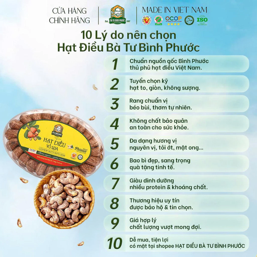 Đây không chỉ là hạt điều – đây là tinh túy từ tâm của người mẹ Bình Phước từ năm 1987, là món quà sức khỏe mà hàng triệu gia đình Việt tin dùng mỗi ngày.
