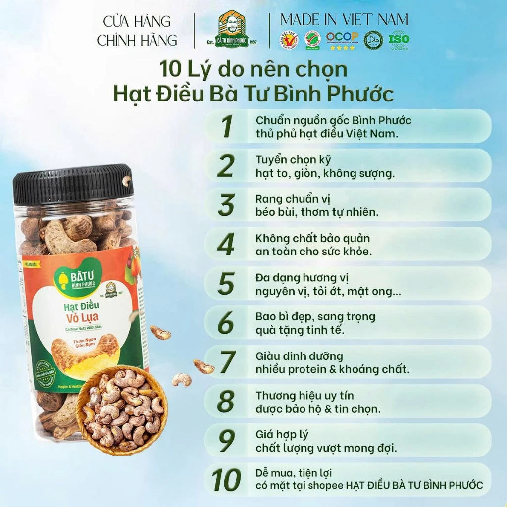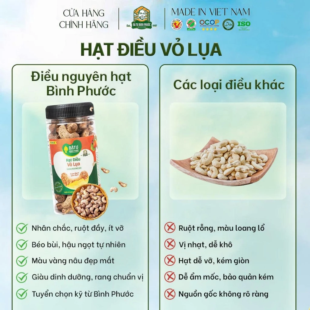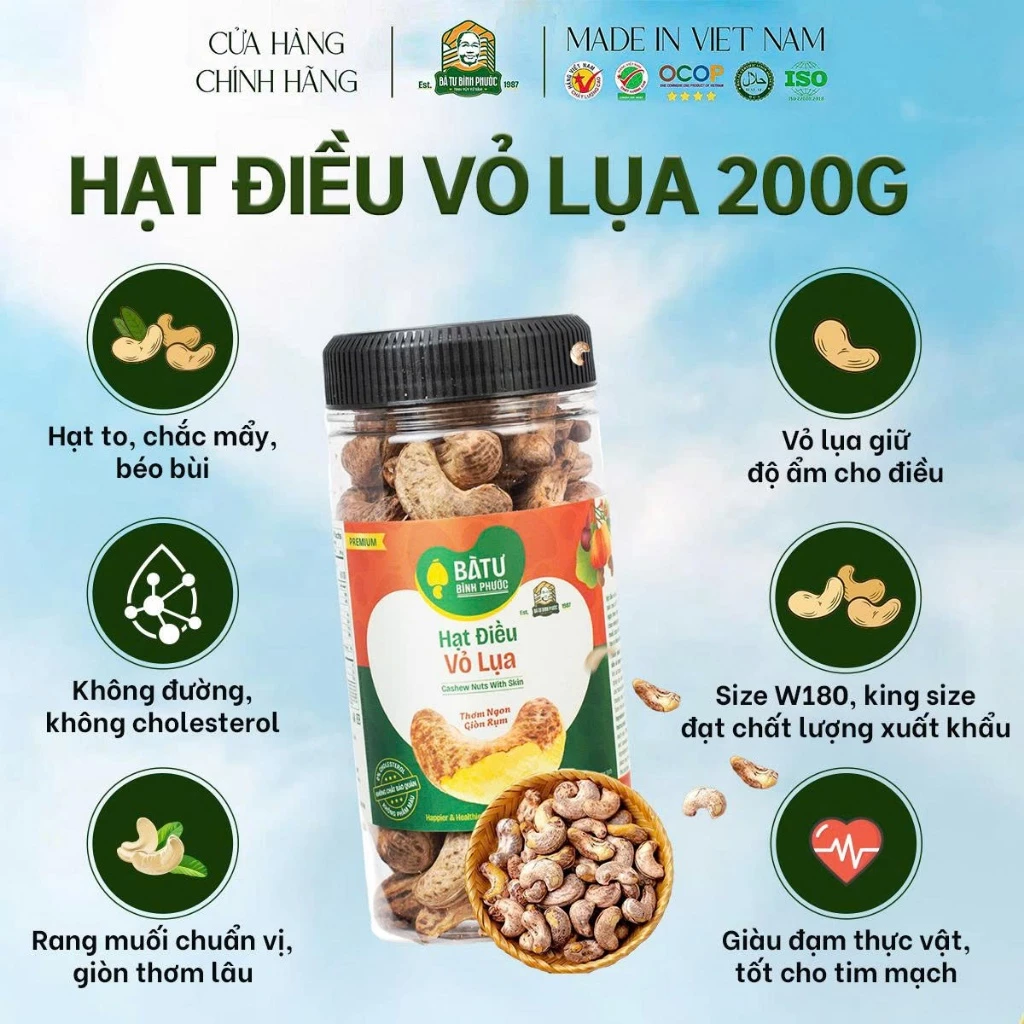 Hạt Điều Vỏ Lụa Bà Tư Bình Phước 205g chính là dòng sản phẩm “gốc rễ truyền thống” đang bán chạy nhất hiện nay!